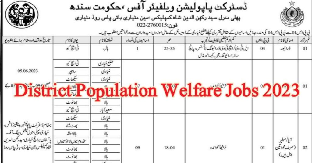 District Population Welfare Office Sindh Jobs 2023 District Population Welfare Office Sindh invites applications from dynamic, Energetic and suitable Pakistani Nationals having domiciles of Matiari. These posts are from BPS-01…