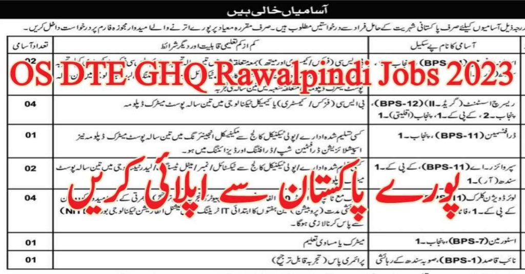 OS DTE GHQ Rawalpindi Jobs 2023